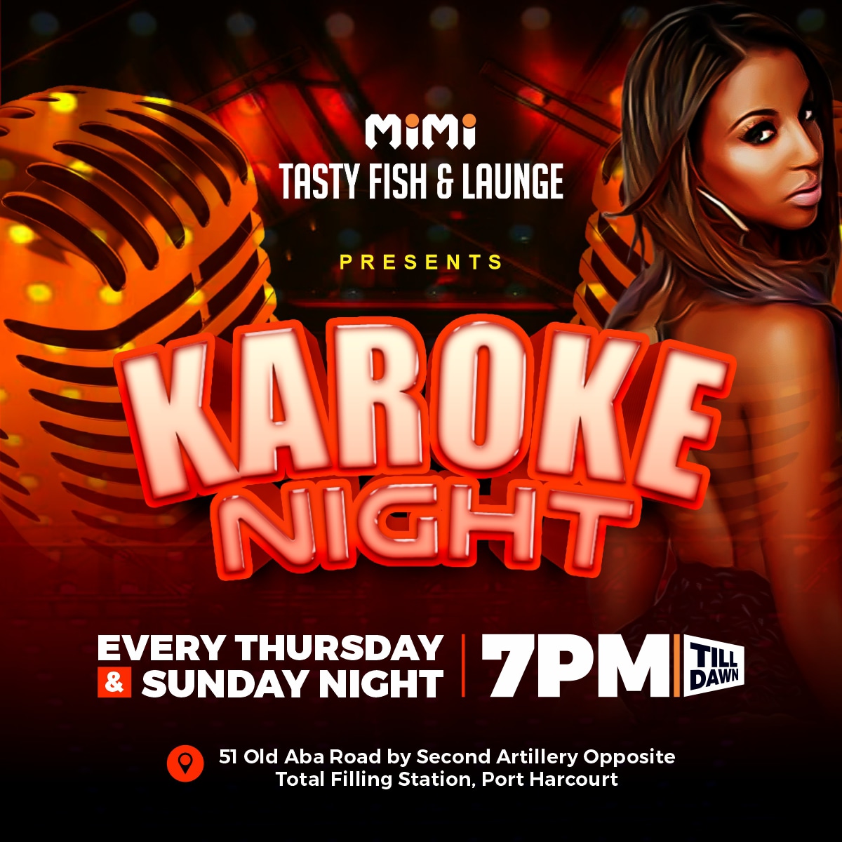 "After a hard and stressfull day at work, i and my colleagues usually chill out at any of the MIMI TASTY FISH & LOUNGE joints, why because we know we will be entertained."